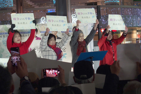 初の女性首相が軍事費のGDP比2%の2年前倒しや、「台湾有事」への自衛隊参戦答弁などタカ派路線を暴走しても内閣支持率が高止まっている。そんな空気を一掃しようと、4人の女性委員長・党首、幹事長が12月26日、東京都内で「私たちは戦争よりも平和を選ぶ」と銘打ち、街頭トークを行った。