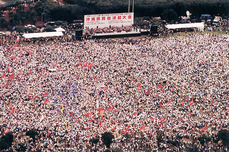 今日の辺野古新基地問題の起源は1995年に遡る。同年10月21日、宜野湾海浜公園は米兵による少女暴行事件に抗議する8万5千人の県民の怒りで埋め尽くされ、高校生たちは「軍隊のない、悲劇のない、平和な島を返してください」と訴えた。