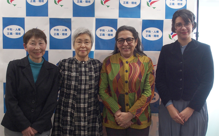 右はアレクサ・モラレス一等書記官、左は通訳を務めた富山栄子副委員長=2月10日