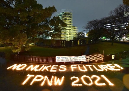 核兵器の開発から使用を初めて違法とした核兵器禁止条約が1月発効、批准したのは7月12 日現在55カ国・地域。条約をけん引すべき唯一の戦争被爆国である日本政府は、米国の「核の傘」にすがって背を向ける。一方、核保有国の20年度の核兵器関連支出(推定)は米国の約374億ドル(約4兆1千億円)を筆頭に合計726億ドル(約7兆9千億円)。日本はじめ世界の市民は、この現実を変えようと動き出している。