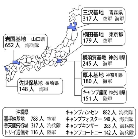 在日米軍基地の感染者数