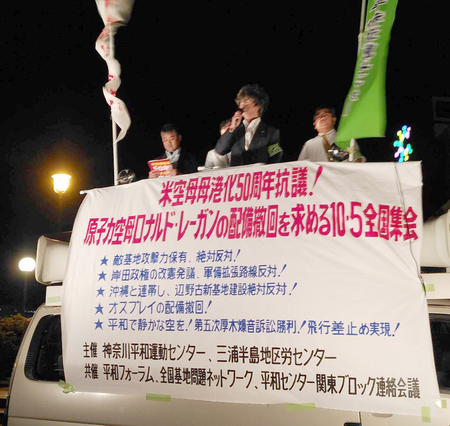 集会は最後にアピール「米空母母港化50周年抗議! 原子力空母の配備撤回を求める10・5全国集会」を採択し、米海軍横須賀基地ゲート前で原子力空母ロナルド・レーガンの配備撤回を求めアピールを行った。