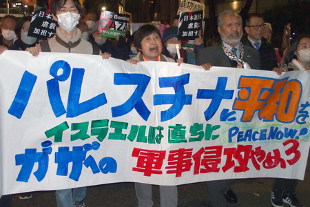 「パレスチナ国際デー」の11月29日、「戦闘休止を停戦に」「ガザ解放を」と訴える「パレスチナに平和を 緊急行動」が東京・新宿で取り組まれた。大阪市でも北区にある米総領事館前でイスラエル支援をやめよと抗議行動が取り組まれた。イスラエルのネタニヤフ首相は、ハマス殲せん滅めつとガザ地区からパレスチナ人の追放を公言している。