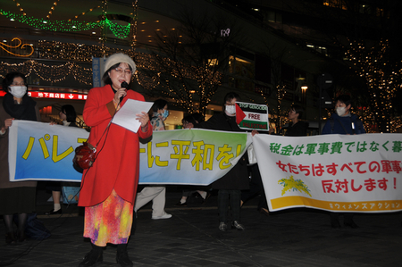 臨時国会閉会翌日の12月14日夕、東京・有楽町のイトシア前で総がかり行動実行委員会性差別撤廃プロジェクトが行った「パレスチナに平和を!ストップジェノサイドウィメンズアクション」では、共産党の伊藤岳、社民党の福島瑞穂の両参院議員、日本婦人団体連合会、全労連女性部などの各代表、市民が自民党と、イスラエルを厳しく糾弾した。